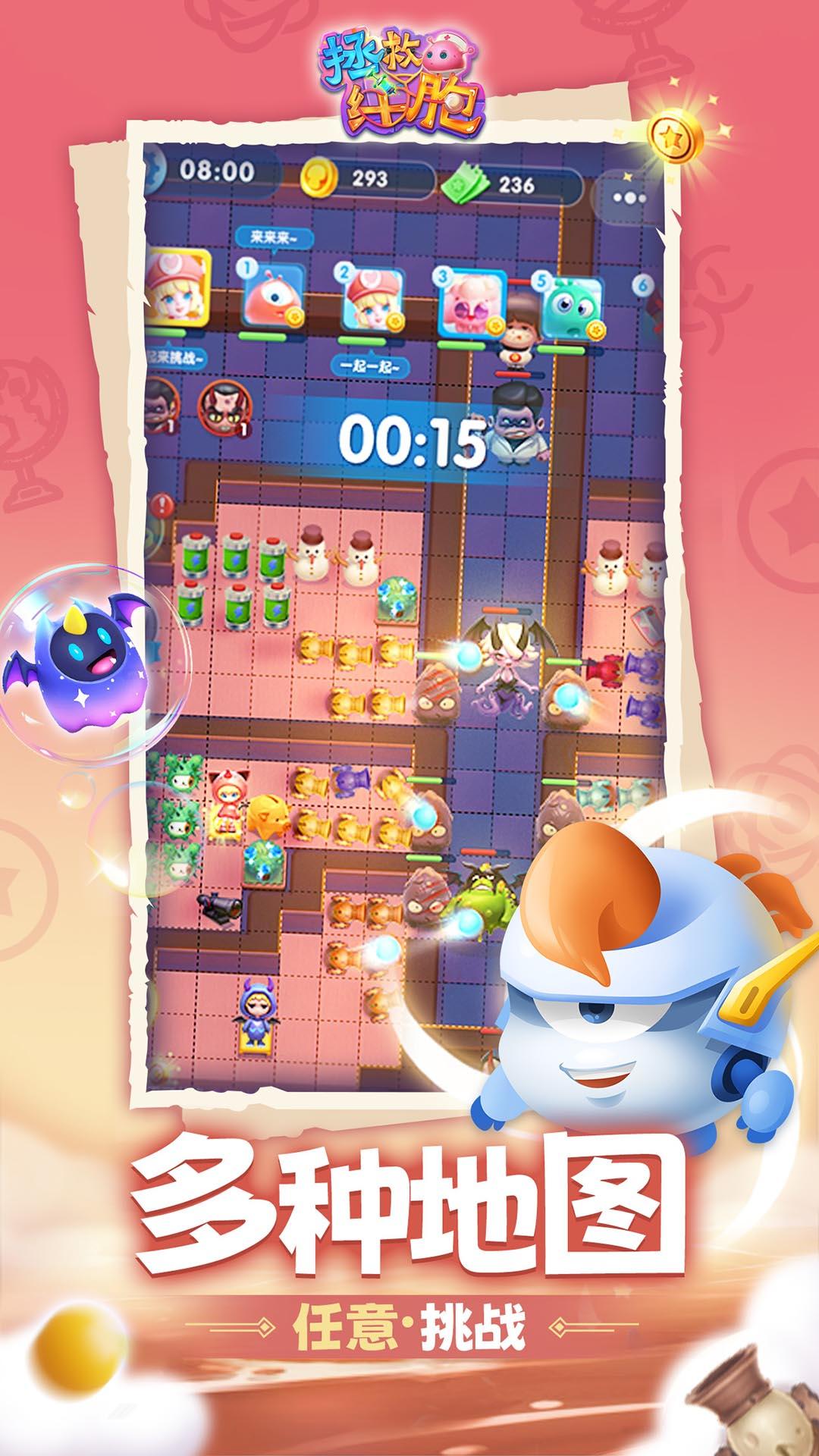 拯救细胞是一款将塔防玩法与多人合作对抗完美结合的休闲策略手游,背景设定在人体微观世界。玩家化身为身体小卫士,通过建造防御塔、升级技能、组队合作等方式抵御病毒、寄生虫和负面情绪的入侵。游戏融合了合成、非对称竞技、房间守卫等创新模式,既有传统塔防的策略性,又加入了社交互动和自由创意玩法,让每一局战斗都充满变数。