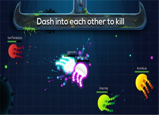 在玩家需要控制自己的水母角色,通过虚拟摇杆移动,不断吞噬海底的琼脂和小型生物来壮大自己。随着体型增长,可以解锁更多技能和外观,同时也要小心躲避海胆等致命障碍物。游戏支持多人在线对战,你可以与其他玩家展开激烈碰撞,争夺海底霸主的地位。此外还有团队合作模式,玩家之间可以相互喂食加速成长,体验协作的乐趣。游戏采用伪3D技术打造,水母游动时的飘逸感和灯光效果非常逼真,搭配9首应景的BGM,营造出沉浸式的海底世界。
