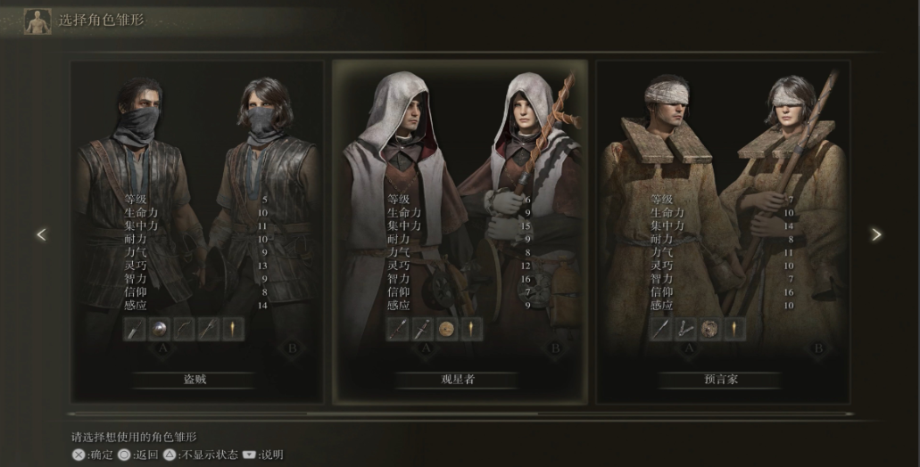职业选择是开局阶段的核心决策之一。流浪骑士适合偏好重甲与盾牌防御的玩家,初始装备提供较高容错率;观星者则适合倾向远程魔法攻击的玩家,智力属性优势明显。武士凭借灵巧属性和打刀在近战职业中表现均衡。角色性别和体型不影响属性,但初始装备与战技差异显著。遗物选择可根据后续路线灵活调整,部分遗物如黄金种子可早期提升圣杯瓶使用次数。属性加点需结合武器补正方向,初期建议优先提升生命值以增强生存能力。