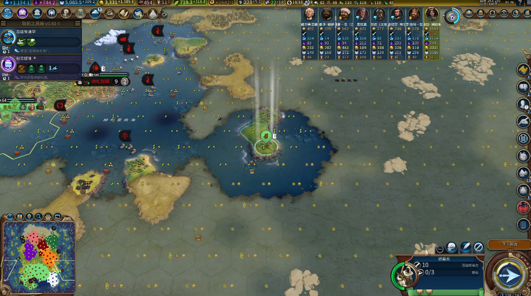中期发展时要注意优先研究能提升海洋产出的科技和政策。比如批量生产科技解锁的威尼斯军械库奇观,能让你造一艘海军送一艘,超级划算。政策卡里记得挂上海军开发相关的卡片,比如海军传统能加速海军单位生产。如果运气好成为城邦奥克兰的宗主,所有浅海单元格都会白送生产力,这对依赖海洋的城市简直是天降福利。
