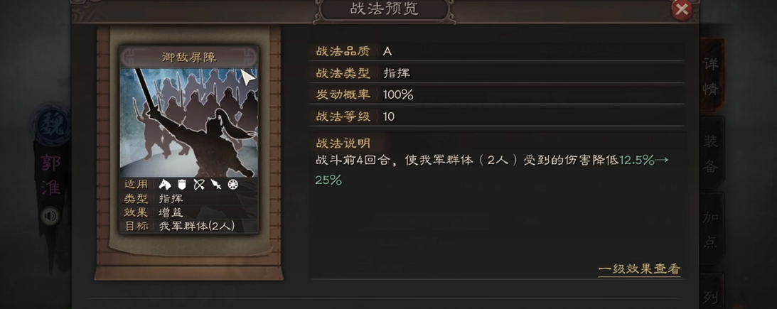 绝地反击依赖第五回合的伤害结算,因此对前期减伤与续航要求苛刻,藤甲兵、御敌屏障等技能可有效缓解压力。同时需警惕虚弱类控制,建议搭配洞察或净化类辅助。面对速攻队时,可通过箕形阵、锋矢阵等调整攻防节奏。