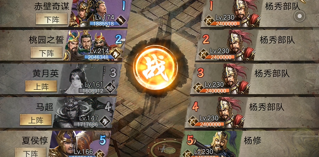 230级杨修副本其实难度不算太高,只要咱们的战车和武将配置合理,通关还是挺轻松的。这个副本的NPC都带着两辆战车,护甲有四格,还会放血盾技能,而且他们的雁形阵箭雨特效必定破甲,单排血量在16万以上。只要能打过229级副本,这个本基本没啥压力。关键点在于战车的分配和武将技能的使用,比如关羽的觉醒战法在这里特别有用,能快速清理多排敌人。