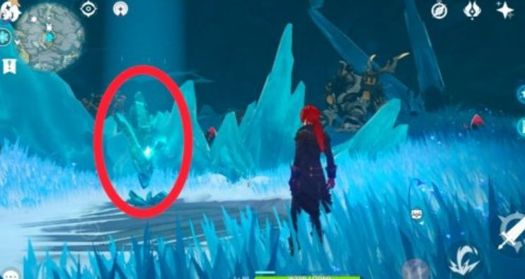 完成三处碎片解封后,寒天之钉会升起并解锁通往山顶的路径。需返回寒天之钉区域,再次收集深赤之石击碎周围新出现的坚冰。此处建议使用弓箭角色,因部分深赤之石位于高处或需通过风场获取。击碎全部坚冰后,山顶道路完全开放,芬德尼尔之顶秘境入口将出现在寒天之钉旁的山顶平台上。