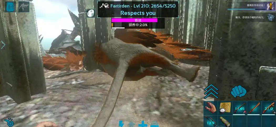 驯服时记得带上足够的麻醉箭或麻醉镖,狮鹫的眩晕值下降很慢,但还是要准备一些麻醉药以防万一。建议先饿它一会儿,等它的饥饿度消耗得差不多了再喂食,这样能节省不少饲料。如果觉得单人操作困难,可以找朋友帮忙,一个负责稳定眩晕值,一个负责喂食,效率会高很多。