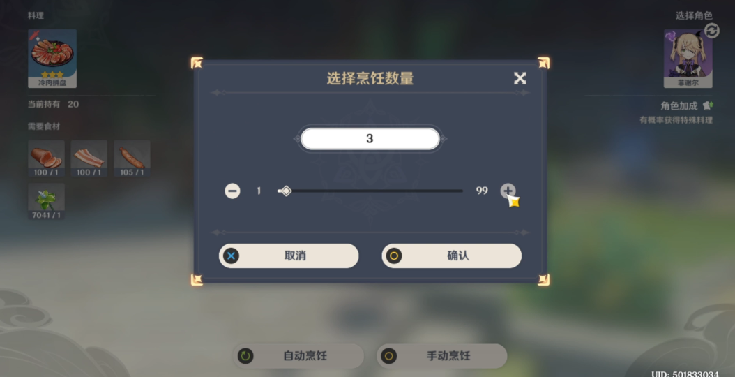 烹饪机制来看祝圣交响乐属于角色特色料理,这类料理通常需要特定角色参与制作才能获得。菲谢尔作为该料理的专属角色,其特殊烹饪效果使得普通冷肉拼盘有机会升级为祝圣交响乐。祝圣交响乐在实战中主要适用于物理输出型队伍,其加成效果明显优于普通料理。由于多人游戏中仅对自身角色生效,建议在单人挑战高难度内容时使用。这款料理的独特之处在于其精美的摆盘设计和特殊的获取方式,体现了游戏在细节上的用心。