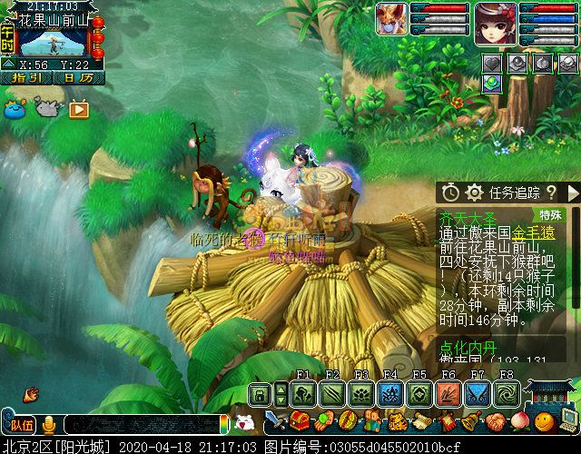 第一阶段的核心任务是安抚花果山的猴子猴孙,属于单人任务。地图中会随机刷新15只猴子,包括伤心的小猴和临死的老猴,玩家需分别使用ALT+4(舞蹈动作)和ALT+8(悲伤动作)与其互动。每名玩家最多完成5次,需注意动作完成后才能继续下一只猴子。完成后黑白无常现身,两队需分别击败黑无常和白无常,战斗中需优先击杀混沌兽(天罚)和夜罗刹(斩妖),避免其对猴王分身造成过高伤害。