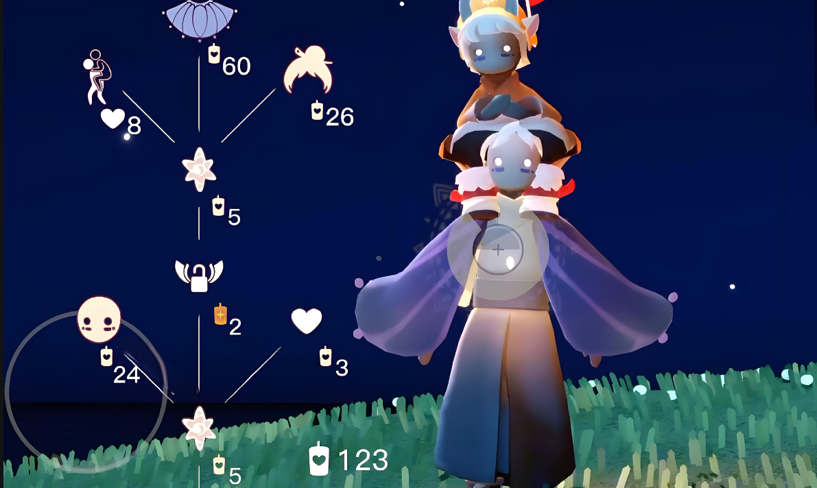 每日跑图收集烛光、完成季节任务可稳定获取白蜡烛;爱心则需通过好友互赠或完成特定先祖任务获得。若需快速集齐8颗爱心,可与好友约定互送心火,或参与游戏内活动获取免费爱心。注意先祖兑换树中的爱心节点仅能兑换一次,后续需依赖社交互动补充。