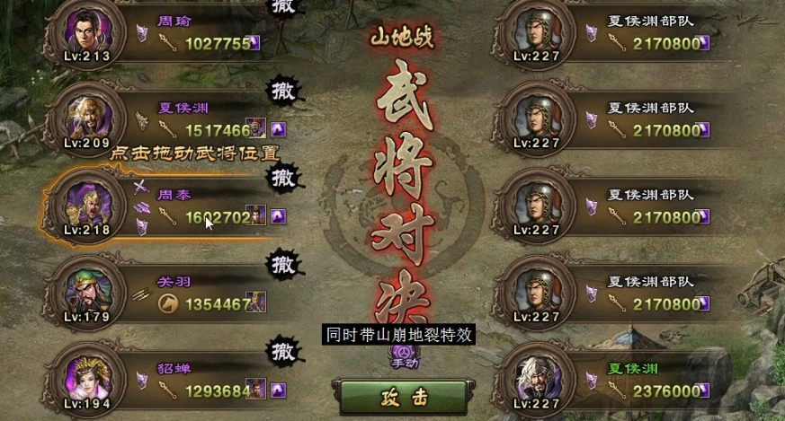 227级副本是山地地形,夏侯渊作为关键角色携带4辆战车和70级方圆阵法,其战法拥有类似夏侯惇打4排及曹植战法技能的效果。平民玩家需优先选择提升全队能力的羁绊角色,例如增强防御或攻击力的武将。前排应部署高防御、高血量的坦克角色,后排则安排攻击型武将以保护输出环境。NPC为4辆战车阵容,第一排附带曹植副本的被动效果,需注意司马懿在此副本中不适用,而曹操多次使用后会出现格挡失效的情况。