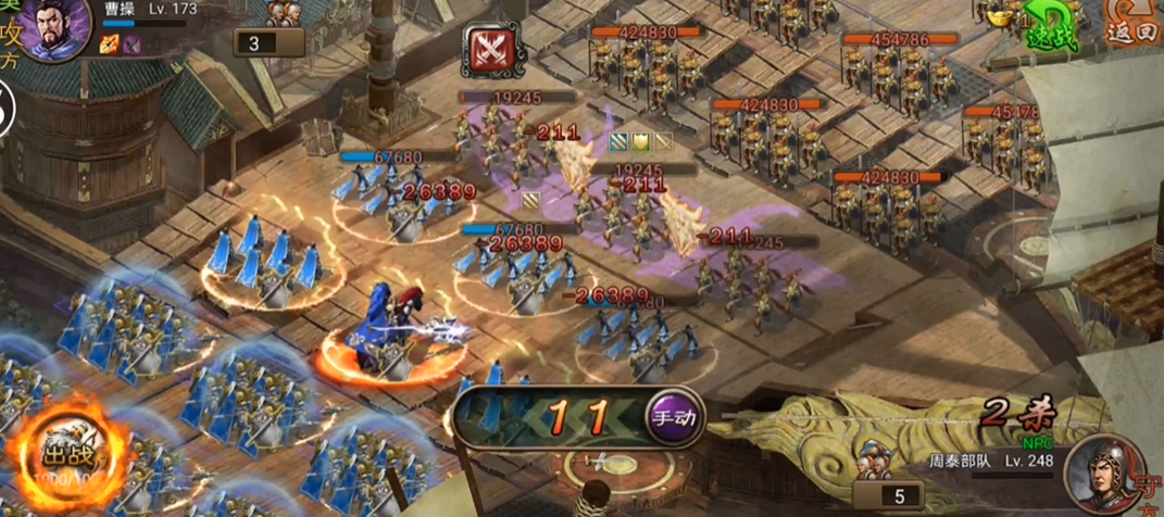 首发典韦,直接释放技能消耗敌方三排半兵力后下场。马超第二个出场,利用格挡机制抵挡敌方技能,保留兵力与敌方同归于尽。黄忠第三位登场,快速清残兵并确保太史慈满状态上场。太史慈作为收尾武将,连续释放技能压制周泰兵力,最终以兵力优势获胜。注意控制技能释放时机,避免浪费输出。