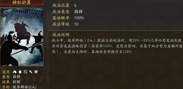 诸葛亮的伤害依赖智力差,如果遇到司马懿、SP荀彧这类高智力武将,神机妙算的额外伤害就难以触发。建议给主力法师配备夺魂挟魄或智计等偷属性战法,直接削弱诸葛亮的输出能力。如果实在没有合适武将,至少保证自己的智力将不低他太多。
