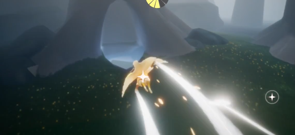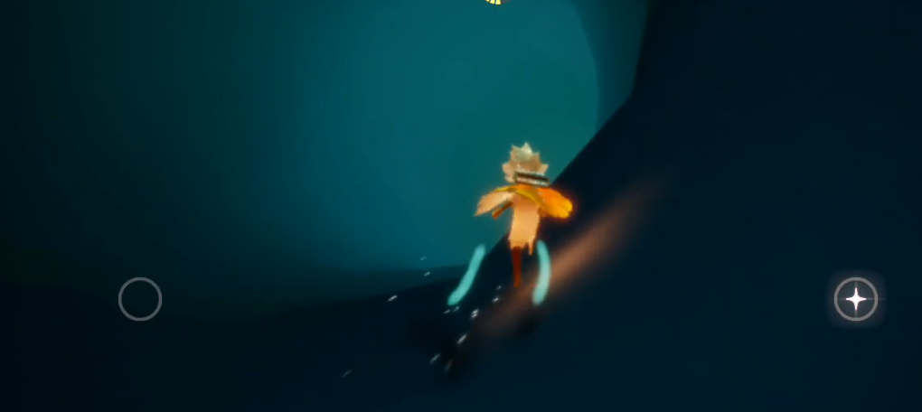 山洞内部结构分为上下两层:上层为荧光蘑菇环绕的观景平台,可获取1个光之翼;下层需通过树洞机关进入,分布着发光水母群与先祖石碑。下层区域存在动态光影效果,部分烛火隐藏在瀑布后方或悬浮平台边缘,需借助飞行或滑翔技能探索。若能量不足,可优先点燃场景内的固定蜡烛恢复行动力。