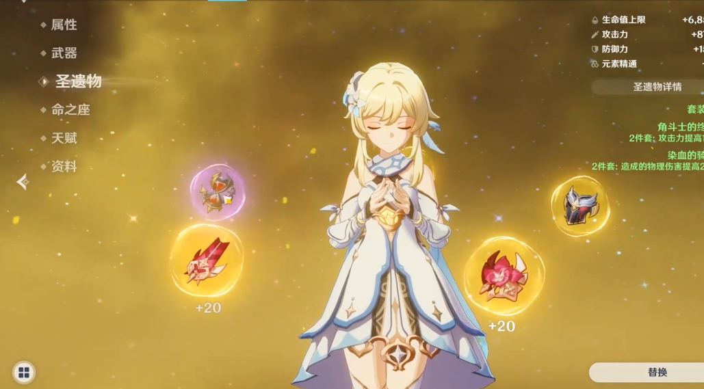 旅行者作为主角,虽然常被调侃为五星外观四星实力,但只要圣遗物搭配合理,也能在队伍中发挥不错的作用。主角有两种元素形态——风和岩,不同形态的圣遗物选择差异较大。风主更适合辅助充能,推荐学士套或风伤加成的五星圣遗物;岩主则偏向输出,适合赌徒+角斗士或宗室+角斗士的混搭组合。关键是要根据队伍需求调整,比如需要快速开大就优先充能效率,想打爆发就堆双暴和攻击力。