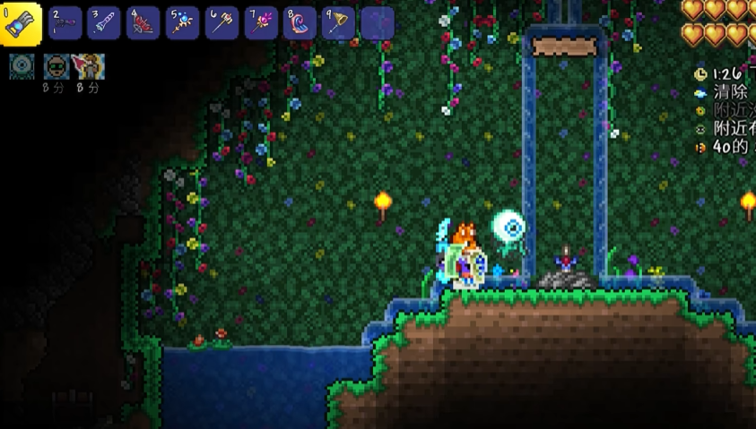 附魔剑冢是寻找该武器的核心区域,这种地形通常位于世界两侧三分之一范围内,表现为顶部带有细长竖井的小型洞穴。洞穴背景墙由花墙构成,中央存在一座两侧环水的小土山,山顶即放置石中剑背景物体。地表可能无法直接观察到竖井入口,需借助照明宠物或挖掘工具探查。探索时建议从绿地边缘向下挖掘十几至几十格后横向搜索,尤其注意狭窄裂缝。