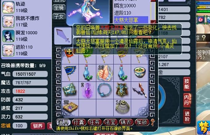 如果召唤兽的灵性已经达到50继续吃清灵仙露就需要更谨慎了。这时候可以选择高5或者高6的仙露,它们增加的灵性值比较适中,不容易出现大幅跳跃。如果灵性值已经很高,比如90建议先停一停,计算好剩余的灵性空间再决定吃哪种仙露,避免浪费高级道具。