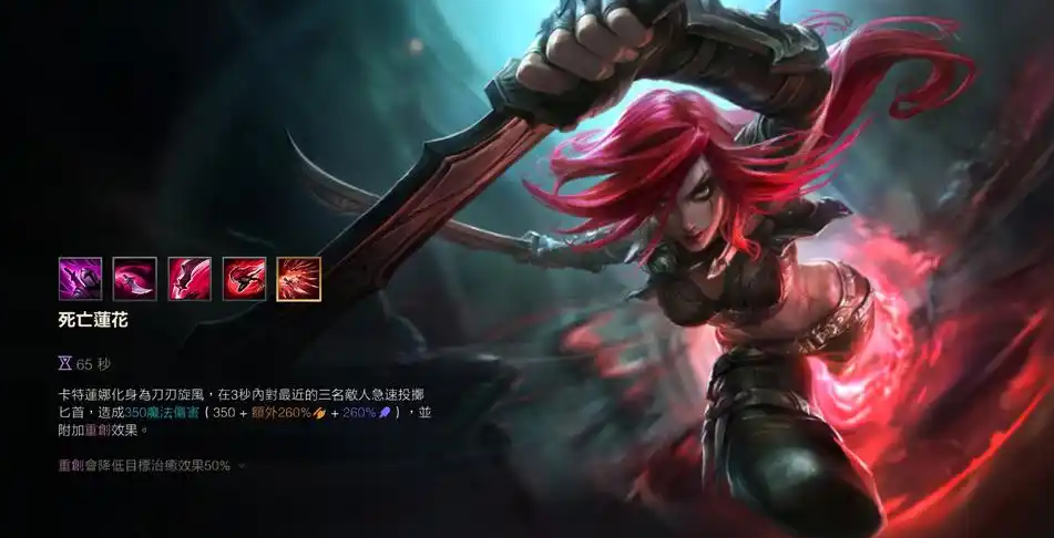 卡特琳娜作为英雄联盟手游中的高爆发刺客型法师,凭借其独特的技能机制和收割能力成为中单位置的热门选择。该英雄的核心优势在于被动技能提供的击杀刷新冷却效果,配合多段位移与范围伤害,能在团战中快速切入战场完成收割。需卡特琳娜的操作难度较高,对进场时机和技能衔接有严格要求,适合有一定操作基础的玩家使用。