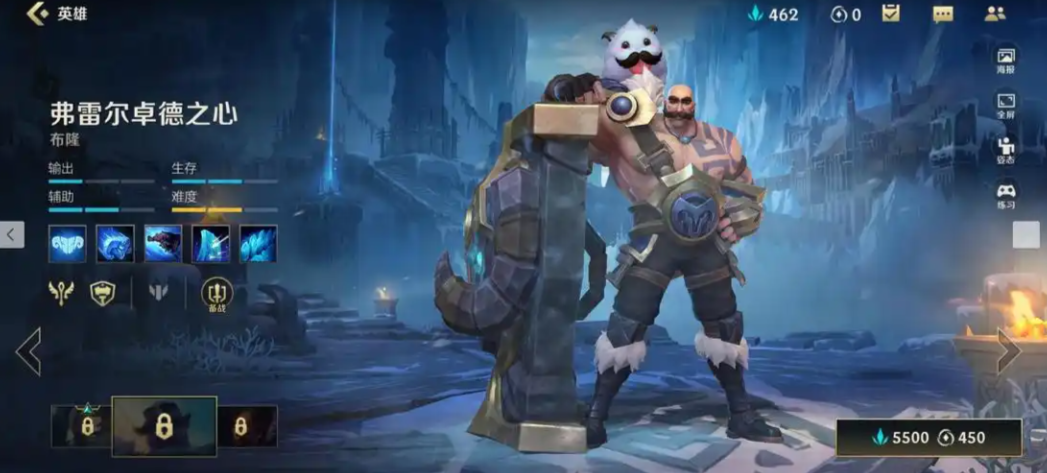 布隆的核心玩法围绕被动技能震荡猛击展开,其普攻和一技能寒冬之咬可为敌人叠加标记,队友的普攻同样能叠加层数,4层后触发眩晕效果。对线期需优先利用一技能减速目标并挂上被动,配合射手快速叠满控制链。二技能挺身而出是关键的位移和保护手段,可跳向队友或小兵,落地后为双方提供双抗加成,在换血或防gank时尤为实用。三技能坚不可摧的盾牌能完全抵挡首次伤害并减免后续伤害,需精准判断敌方输出方向,尤其针对爆发型技能或ADC持续输出。