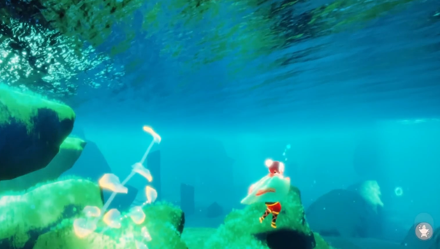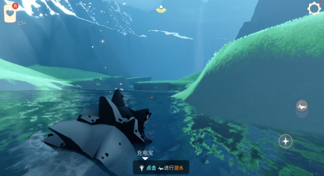 解锁功能后,玩家在水中漂浮时,右侧方向键会变为潜水控制键。上滑摇杆可上浮,下滑摇杆则下潜,通过方向键调整角色移动方向。需注意屏幕上方光翼图标下方的蓝色氧气条,潜水时氧气条会持续消耗,若耗尽未及时补充,角色会因缺氧而损失光翼。氧气可通过靠近蓝色气泡或接触水下光之生物(如鱼、鲲)补充,确保探索安全。
