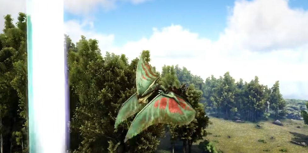 风神翼龙的分布具有随机性且刷新率较低,常见于地图中部、红色方舟附近及红木林一带,飞行高度约为一颗红木树的高度,较易发现但难以接近。若常规方法难以奏效,可选择将其击杀后拾取生命水晶,通过封闭式复活祭坛复活并驯服。此方法需提前建造至少4层高的封闭空间以防止逃脱,且需注意保护尸体避免生命植入体损坏。复活后的风神翼龙将处于虚弱状态,需及时喂食以完成驯服。