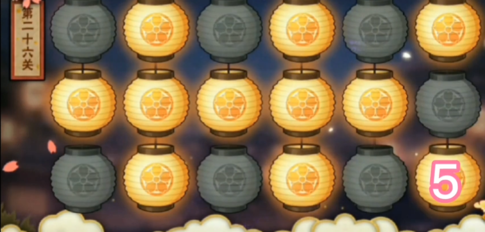 这一关的难点在于花灯数量较多,容易看错行列位置。记住花灯排列是从左到右为第一到第五个,从上到下为第一到第三行。点击时注意十字架原理——每次操作会影响目标花灯及其上下左右的明暗状态。如果发现点错导致混乱,可以退出重开关卡,初始状态会重置。耐心观察当前亮暗分布,再对照正确顺序操作。