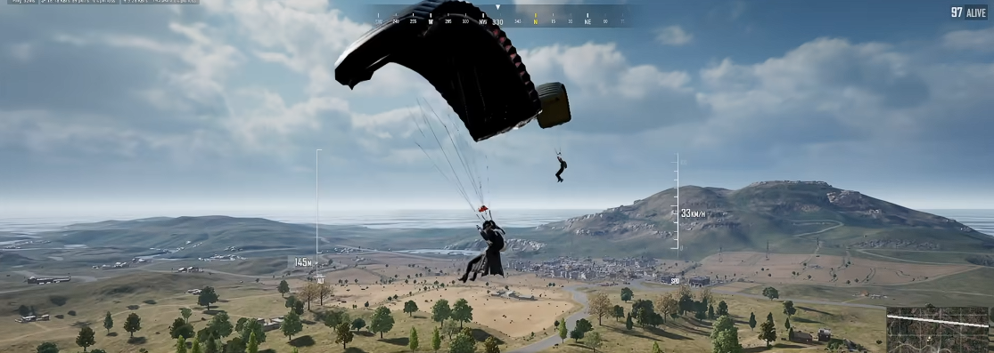 开伞时机需根据目标距离调整,通常建议在2500米左右高度开伞,留出足够时间调整飞行轨迹。若目标点较远,可采用呼吸跳伞法——间断按压W键保持40km/h的下落速度,最远可滑行2公里。近距离落点则需垂直俯冲加速至234km/h,确保优先落地抢占资源。开伞后需持续观察周围敌人动向,避免落入包围圈。