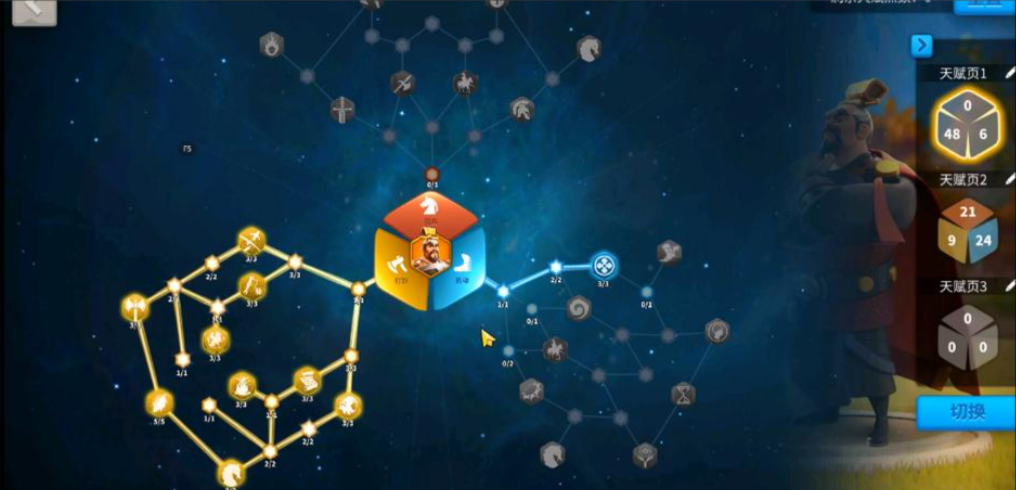 曹操的机动天赋是其核心优势,点满风驰电掣和千里良驹后可提供高达27%的行军速度加成。配合技能虎豹骑的移速提升效果,曹操在脱离战斗后还能额外获得50%速度增益,使其成为长距离奔袭的最佳选择。贝利撒留则依靠机动天赋中的洞悉减少行动力消耗,同时骑兵天赋进一步强化移动效率,适合频繁切换目标的小范围符文采集。