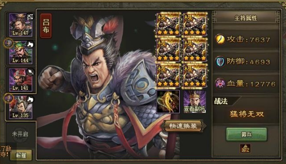 吕布中是一名以高爆发和追击能力著称的核心武将,其技能设计围绕无视防御和连击机制展开。觉醒后的吕布战法升级为战神无双,可对4排敌军造成范围伤害,每击杀一排目标会触发一次追击,追击伤害可暴击。若追击成功击杀下一排敌人,还能额外发动破阵飞戟,对3排敌军进行攻击,且副将同样生效。这一机制使吕布成为副本推图和国战中的清场利器,尤其适合应对多排兵力部署的敌人。