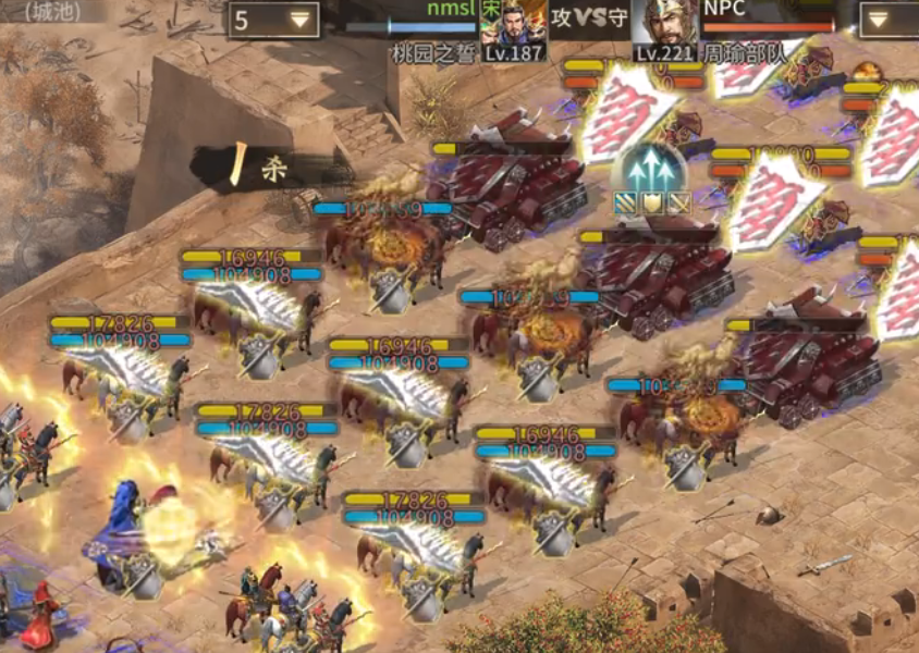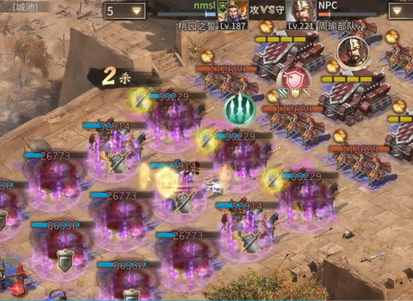 221级周瑜副本整体难度比220级下降不少,主要体现在NPC的攻防血数值大幅降低。这个副本共有5个NPC,每个都带第二战车和护盾特效,战法能打4排,但被动火烧不破甲。需非觉醒武将的战法会被NPC抵挡,所以咱们最好优先派觉醒武将上场。