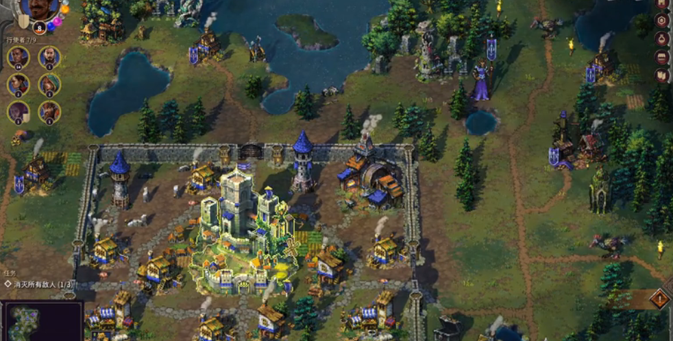 开局选择佩拉丁作为英雄是关键,其创造+1的特长能够快速积累混沌能量,配合10弓手和后勤技能可以在前期实现高效的无损清野。前两天优先采集市场和酒馆资源,通过捡取野外经验和物资提升战力,若运气较好获得额外弓手将大幅提升开荒效率。升级时优先选择创造系技能,重点培养高级吟游诗人,该单位每队可提供2点创造和1点混沌能量,是战术核心。