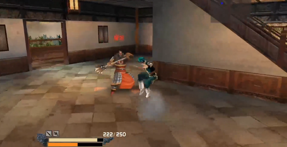金枪的↑A←→A↓↓↑A连招适合中距离压制,可有效应对多数敌人。若追求速通,可在击杀哨兵后保留大刀,利用其高爆发快速清场。场景中的障碍物如楼梯和阁楼隔断可用于卡位,减少同时面对的敌人数量。战斗中注意拾取场景内的补给品,确保血量与内力维持安全线。通关的核心思路是分阶段削弱敌人战力。第一阶段清理外围哨兵,第二阶段解决阁楼内的野和尚与蒙面人,最终集中火力击杀屠城。若操作失误触发蒙面人增援,需退回走廊利用地形优势逐个击破。