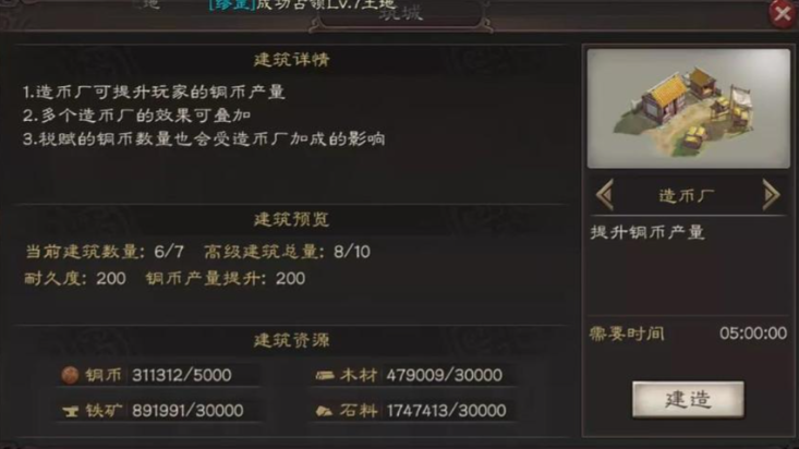 铜币的基础来源是主城和分城的民居与造币厂。民居等级直接影响铜币的自动产出效率,建议优先升级至当前城建阶段的上限。造币厂则需通过占领高级土地解锁,其产量受委任武将的政治属性加成影响,选择高政治属性的武将如荀彧、张昭担任税务官可显著提升收益。每日政厅的征税功能是稳定收入来源,免费征税与金铢强征结合可最大化单日收益。