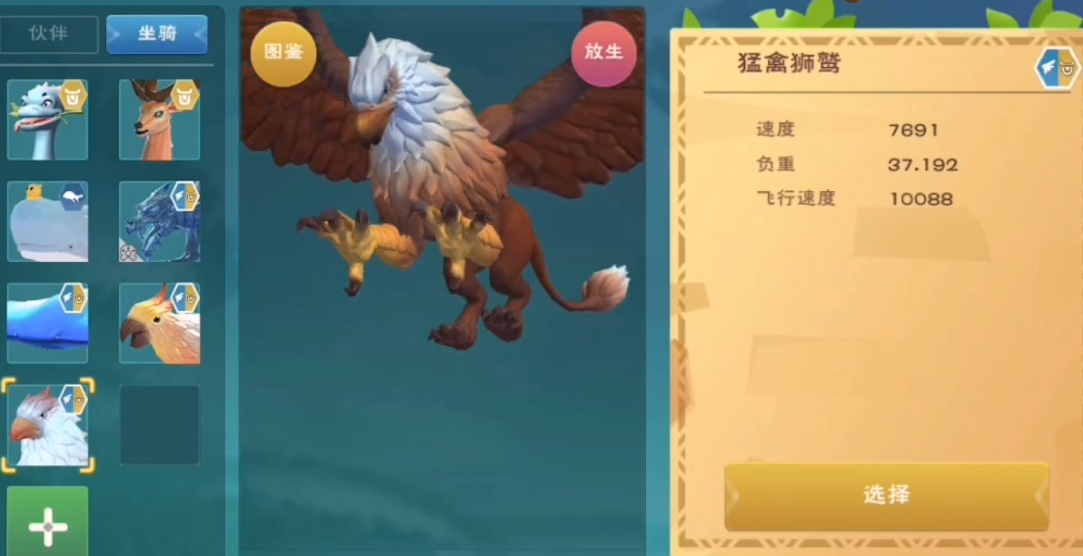 抓到极品狮鹫,一般来说,飞行速度达到11000左右,陆地速度在7000-8000之间,负重35-43的狮鹫就算是相当不错的了。如果运气爆棚遇到飞行速度接近12000的,那绝对是极品中的极品,这种狮鹫不仅飞得快,负重也够用,绝对是长途旅行的最佳伙伴。