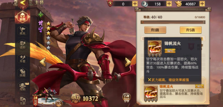 甘宁虽然是强力弓手,但需要搭配减速或灼烧效果的武将才能发挥最大威力。比如搭配周瑜或小乔,能触发额外的暴击加成。升级过程中别忘了同步提升他的装备和武魂,这样整体战力会更均衡。如果遇到卡关,可以多尝试调整阵容站位,让甘宁远离敌方突进角色。