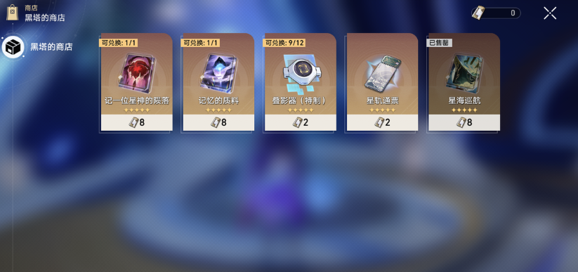 黑塔商店中可兑换的五星光锥共有三种,分别是毁灭命途的记一位星神的陨落、巡猎命途的星海巡航以及存护命途的记忆的质料。这三种光锥均可通过叠影器提升至满精炼状态,兑换优先级通常建议为记一位星神的陨落≈星海巡航>记忆的质料。兑换时应优先考虑主C角色的武器需求,再根据队伍配置决定后续兑换顺序。