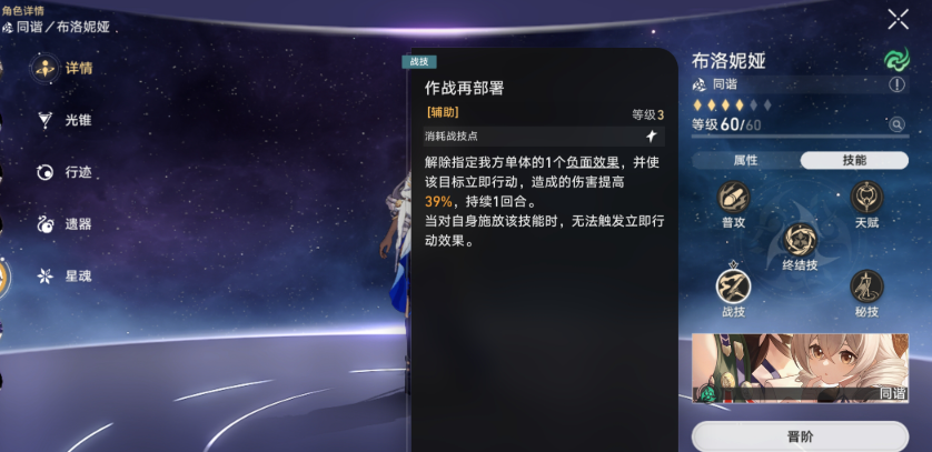 技能加点顺序以战技和终结技优先,天赋次之,普攻最后。丹恒的被动天赋在获得队友增益时会提升风属性穿透,因此配合布洛妮娅、停云等辅助角色能显著提高输出效率。战斗中注意战技起手触发减速,再用终结技收割,这样能吃到天赋加成和减速状态的倍率提升。星魂方面,二魂和四魂是关键,二魂减少天赋冷却,四魂消灭敌人后能提前行动,大幅提升机动性。
