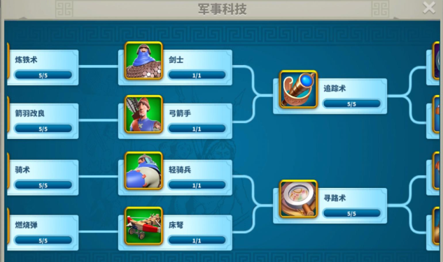 科技研究分为经济与军事两条路线,军事科技对战力提升更为直接。经济科技侧重资源采集效率和生产速度,虽不直接增加战力,但能为军事发展提供资源支持。军事科技中,兵种强化、防御阵型、军事纪律等项目能显著提升部队属性,满级防御阵型可增加约185万战力。研究优先级建议根据当前兵种配置调整,例如主玩骑兵则优先升级骑术和相关增益科技。科技加速道具应集中用于关键项目以减少等待时间。