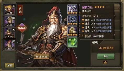 马超穿真霸下套装,平砍伤害高且能抗;太史慈用烛龙或驱虎,确保两次战法爆发;黄忠朱雀套战法伤害拉满;典韦白虎或驱虎,混乱后靠高攻速压制。兵器宝石建议攻击和血量优先堆到10级,防御70级够用。低配玩家可以适当调整宝石等级,但核心思路不变:利用残兵吃战法,靠地形将优势打克制。