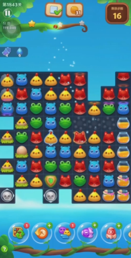 关卡的后期会出现一对黄色的染色宝宝,这对染色球是过关的利器,但使用的时机非常关键。千万不要在它们一跳动就急急忙忙交换,那可能会浪费掉它们的大范围收集效果。最理想的时机是等到小黄鸡的收集任务快要完成,比如只剩下二十多只的时候再进行交换。这时交换染色球,它们会把你指定的一种颜色全部变成小黄鸡,通常能一次性收集完剩余的所有数量,直接完成任务。如果交换得太早,可能收集不到足够数量,后面步数就不够了,所以耐心等待最佳时机是三星过关的重要一环。