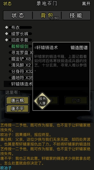 任务进行中玩家还需前往唐门禁地处理后续事宜。这里需要与机关师对话并进入特定场景,随后与唐元枫等角色反复交谈以获取染血手绢等关键任务物品。这些交互环节需要仔细操作,避免遗漏任何细节,以确保神兵系统成功开启。