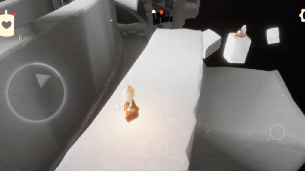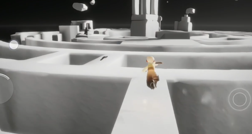 地之试炼本身是一个由许多白色大方块构建的巨大立体迷宫,这些方块可不是老实呆着的,它们会不停地慢慢翻转。你的核心任务就是找准时机,在这些方块翻转得比较平稳的时候跳上去,从一个方块移动到另一个方块,同时点亮沿途那些作为关键机关的石灯台。整个路线虽然弯弯绕绕像座迷宫,但其实是有固定顺序的,你不用担心会有分岔路让你彻底迷失。