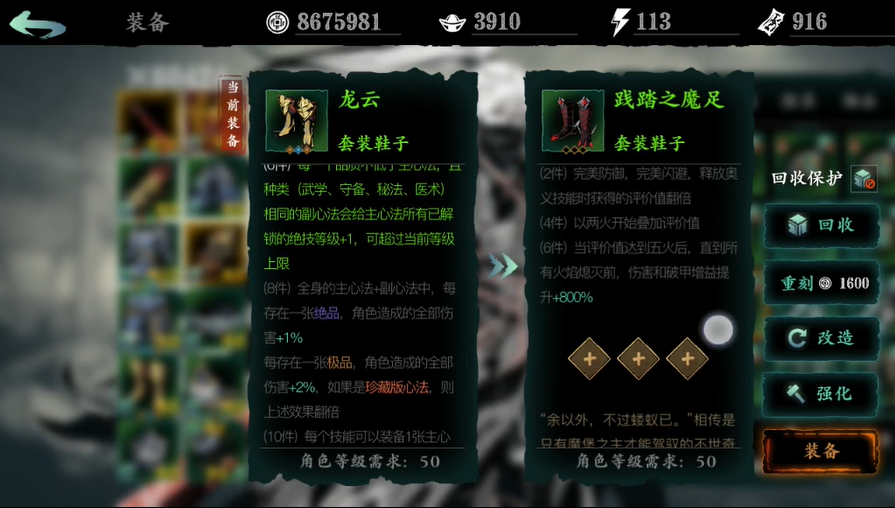 对于新手玩家,如果战力低于五万,不建议直接挑战高难副本,可以先从普通或困难难度的章节副本开始,凑齐两件套激活基础属性。当战力突破八万后,可以尝试宗师副本,每天有三次免费挑战机会。如果已经凑齐六件套但词条不理想,可以去绝境难度刷取,那里掉的龙家至尊副词条更有可能是攻击百分比或暴击伤害等核心属性。