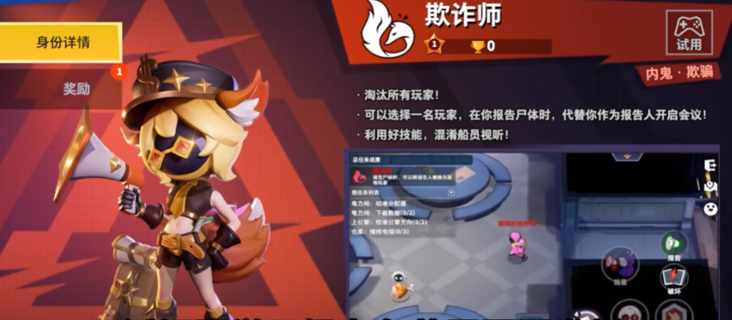 欺诈师作为内鬼阵营里一个特别擅长玩心理的角色,核心玩法就是制造混乱和转移嫌疑,让船员们互相猜疑。开局后你和其他内鬼一样需要隐藏自己,但欺诈师的优势在于不用急着亲自报告尸体,你的技能可以指定一个替身,当你刀人后,系统会强制由你选定的那名玩家来报告尸体,这招能完美地把嫌疑转嫁出去。所以游戏一开始你就要多观察,看看哪些玩家行为比较独来独往或者容易成为焦点,提前把他锁定为你的目标。这个技能每次会议结束后会刷新,你可以根据局势更换新的替罪羊,保持战术的灵活性是你玩好欺诈师的第一步。