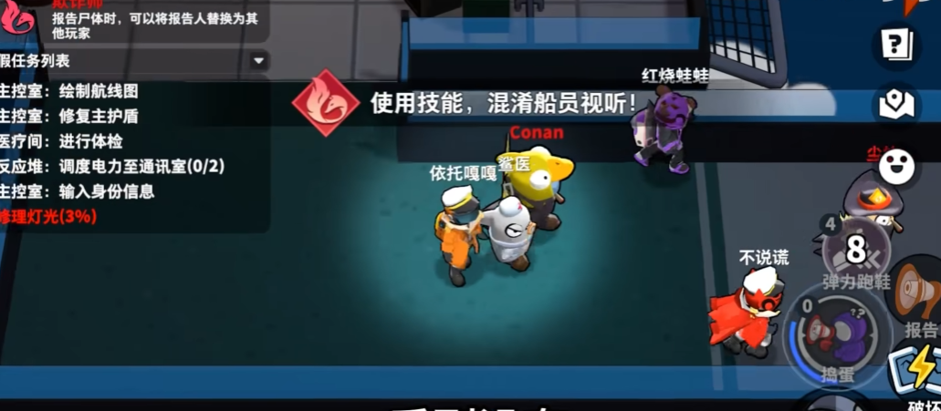 欺诈师非常讲究刀人和使用技能的时机配合。一个常见的战术是配合地图破坏行动来打乱船员节奏,比如在电力间破坏灯光或者在反应堆搞破坏,趁着船员们慌慌张张跑去修理的时候,在灯光昏暗的走廊或者任务点附近动手,然后立刻从通风管溜走。这时候因为场面混乱,尸体被发现的时间会延后,而你选中的那个替身会在不知情的情况下成为报告者,他的行为会显得非常可疑。你要注意,放假尸体或者利用技能制造假报告时,地点要选在船员常路过但又不会人满为患的地方,太偏僻了没人发现,太热闹了又容易当场被看穿。放完技能后记得立刻远离现场,找个安全角落观察其他人的反应。