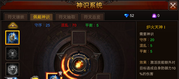 知道了地方,接下来就得想想怎么把这个神识系统给玩起来。你得先去符文抽取那里弄点符文,这是起步的关键。抽到的符文有好有坏,分守序、混乱、平衡三大类,它们不光自己带属性,更重要的是能给你提供激活高级技能神识所需要的神识点数。低阶的符文不用愁,可以通过分解变成符文之尘,然后用这些尘去定向制作你心仪的高阶符文,这样就不用完全看脸,也算有个保底。符文品质越高,给的属性和神识点数就越多。