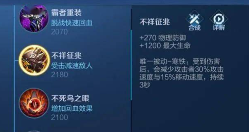 面对典韦时,出装需要有一些特别的变通。如果对面的典韦特别会玩,总是能找机会切到你,那么在中后期,你就需要考虑放弃一些极限输出,换取生存机会。比如说,在出完无尽战刃和泣血之刃之后,你可以先做一件穿云弓增加穿透,然后不直接合成破晓,而是先补一件肉装。比较常见的选择是不祥征兆或者魔女斗篷,这能大幅提升你的物理防御或法术防御,让你在面对典韦爆发时能多扛一下,而多扛一下往往就多了一次使用二技能推开他或者闪现调整位置反打的机会。等生存压力没那么大了,再回头把破晓合出来。