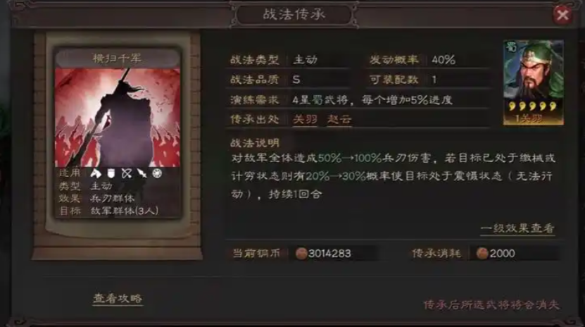 落凤的250%伤害率显著高于纵兵劫掠的172%,这意味着落凤在单次攻击中能造成更高的兵刃伤害,尤其适合追求爆发输出的阵容。纵兵劫掠的震慑效果更为全面,因为它能完全封锁敌人的行动,包括普通攻击和战法发动,而落凤的技穷只针对主动战法,敌人仍可进行普通攻击。如果面对依赖连击或普通攻击的队伍,纵兵劫掠的控制能力更强,但其随机目标特性可能导致效果不稳定。