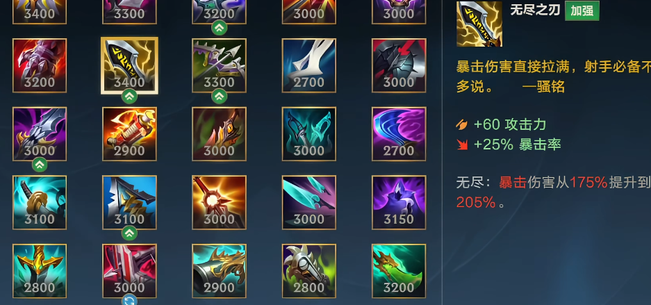 第二件装备,绝大多数情况下就是无尽之刃了。这件装备对亚索的提升是质变级的,因为它能最大化亚索被动双倍暴击率的收益。有了电刀/绿叉加无尽这两件套之后,亚索的战斗力就来到了第一个强势期,的暴击率和伤害已经非常可观,可以积极寻找机会单挑或者跟团了。有些玩家在顺风且对面魔法伤害不高时,可能会选择直接出破败王者之刃,这件装备提供攻击力、攻速和生命偷取,还有打坦克用的百分比伤害,对持续作战能力提升很大。