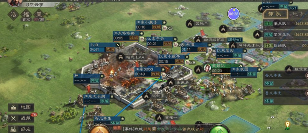 发起对五级城的进攻,个人需要做好充足的战前准备。主力部队的兵力建议提升至六千以上,武将等级最好达到二十级并完成觉醒,以便携带三个战法,同时将核心战法等级提升,这些都能显著提高战斗效率并降低战损。攻城绝非一蹴而就,战损管理和持续补给至关重要,在目标城池附近提前建立并升级好营帐,能为部队提供临时的征兵点和士气补给站,避免因长途行军导致士气低落而大幅削弱战斗力。集中全部主力优先解决守军是攻城流程中的核心艺术。