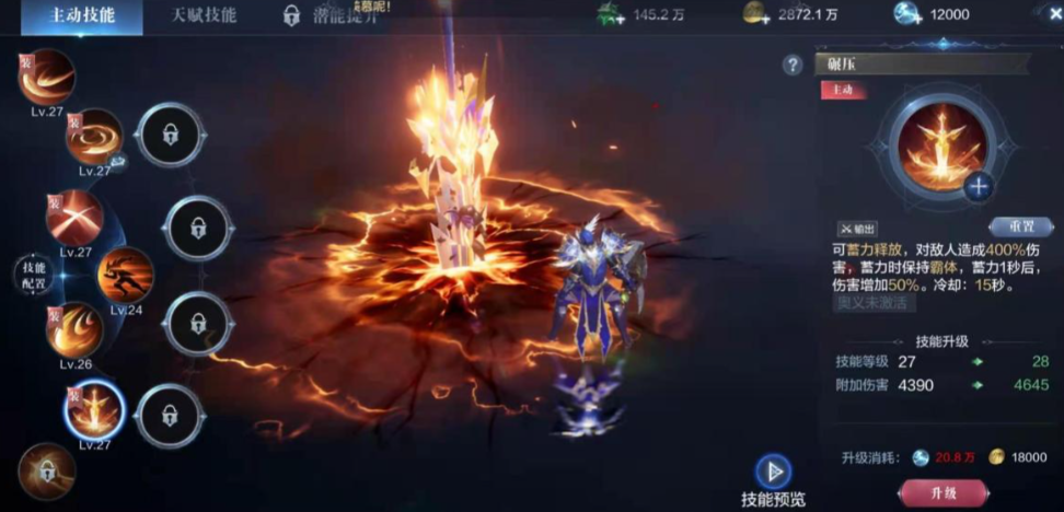 每个职业能带好几个主动技能,你得结合自己职业的特性来选,核心思路就是优先保证主力输出技能的等级,把技能书和经验药水可劲儿往它们身上喂,等级高了伤害倍率自然就上去了。更高级的玩法是给技能装配奥义石,这能给你的技能带来额外的强力效果,比如说让你的主力攻击技能附带持续灼烧或者增加暴击效果,相当于白嫖了一部分伤害。后期还会解锁一个叫技能潜能的系统,这里提供的战斗力加成非常可观,算是长期投入必定有回报的地方。所以每天那些能拿到技能相关材料的活动,比如技能试炼,只要开放了就尽量别错过。