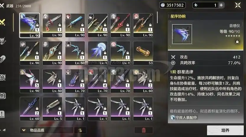 选择需以支撑其辅助功能为核心。武器首选为其专属武器星序协响,它能提升生命值并在释放大招时回复协奏能量,副词条提供的共鸣效率至关重要。若没有专武,四星武器奇幻变奏是优秀的替代选择,其副词条同样提供共鸣效率。声骸套装毕业选择为隐世回光五件套,其效果能在治疗时提升全队攻击力。词条搭配上,COST4声骸主词条优先选择治疗效果加成或生命值,COST3声骸主词条选择共鸣效率,COST1声骸主词条选择生命值。需要守岸人的大招增益效果与共鸣效率属性直接相关,通常需要将共鸣效率堆叠至250%左右以获得最大增益,因此在副词条选择上也应优先保证共鸣效率达标。