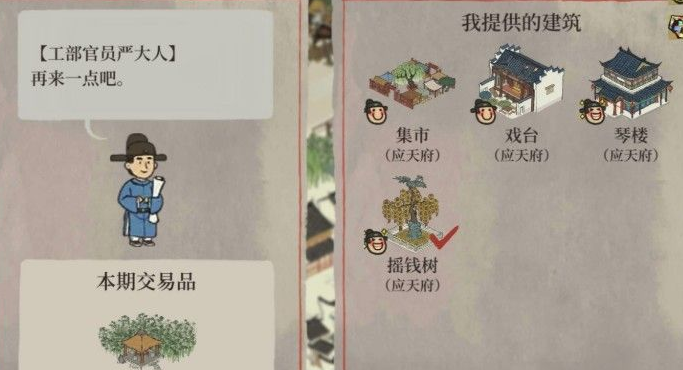 交易系统提供了另一种可靠的肉类来源,严大人会每日访问玩家的城市,带来包括肉摊在内的各种物品供交换。通过调整建筑过滤设置,可以增加刷到肉类相关摊贩的几率。盐商也是重要渠道,尤其是当盐商等级提升至三级后,每轮交易都会固定提供至少一种小摊,其中常包含肉类,让玩家能快速补充资源。